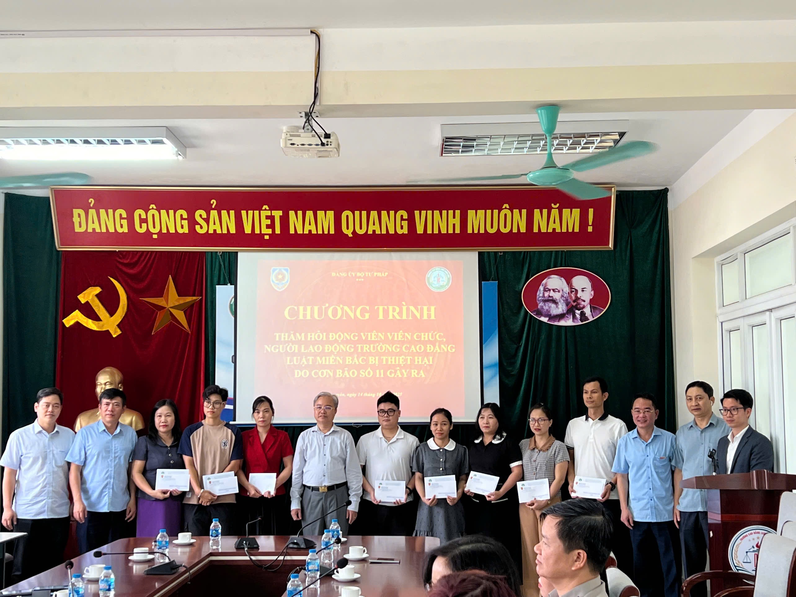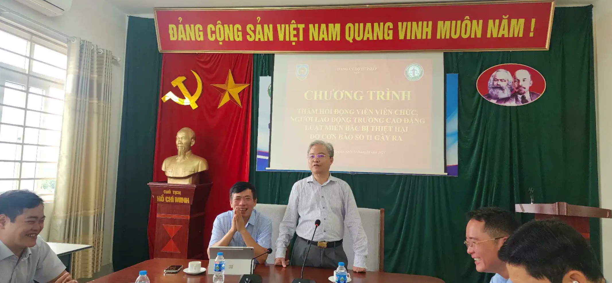 Điểm dừng chân tiếp theo của Đoàn là Trường Cao đẳng Luật miền Bắc. Mưa lũ đã gây ngập cục bộ, ảnh hưởng tới đời sống của nhiều viên chức, người lao động, đặc biệt là các gia đình sinh sống tại vùng trũng.