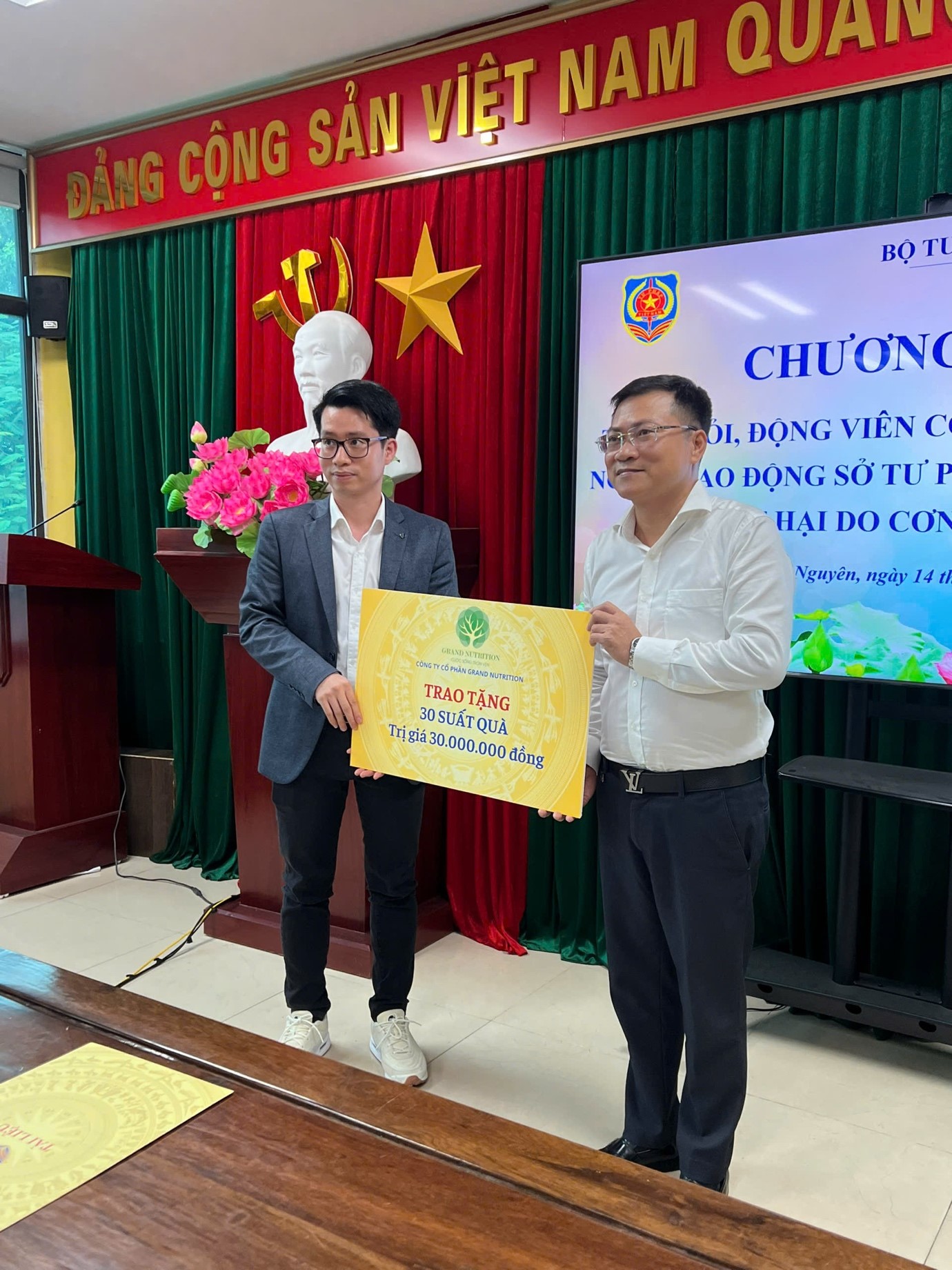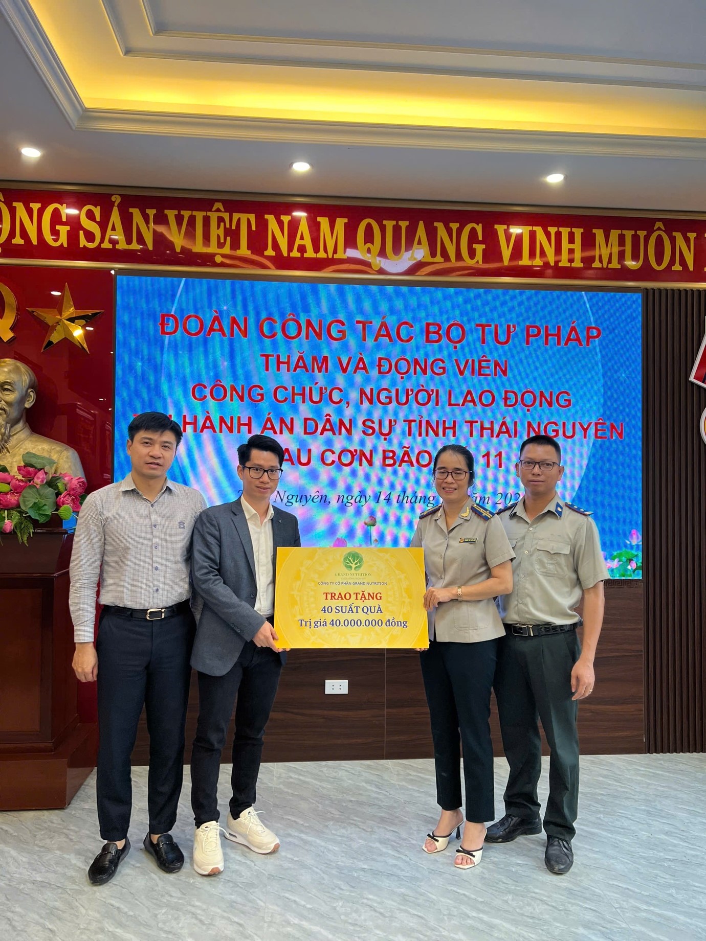 Ngày 14/10, Grand Nutrition vinh hạnh được tham gia Đoàn công tác Bộ Tư pháp do đồng chí Nguyễn Quang Thái, Phó Bí thư chuyên trách Đảng ủy Bộ Tư pháp, làm Trưởng đoàn, đến thăm và làm việc với các đơn vị ngành Tư pháp tỉnh Thái Nguyên chịu thiệt hại nặng nề sau bão số 11.